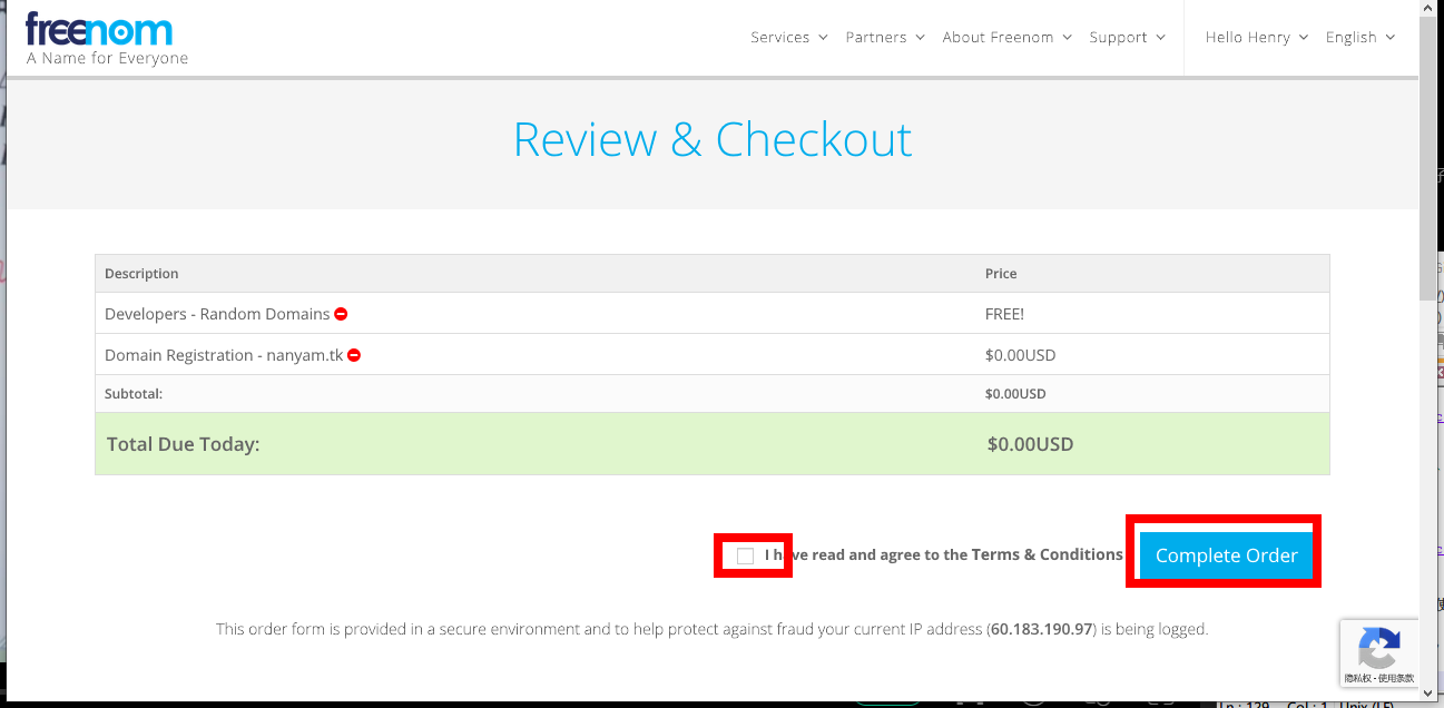 还有,注册的信息要如实填写,尤其是IP地址,freenom有非常严格的审查规则。