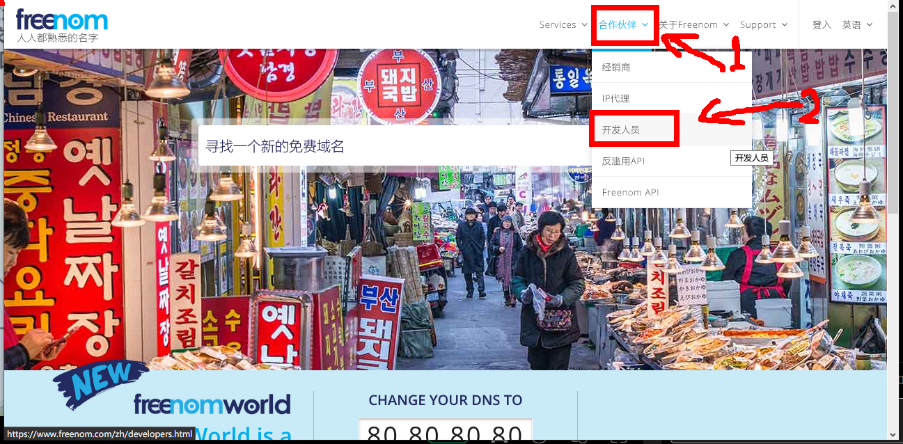 点击首页的合作伙伴,选择开发人员。